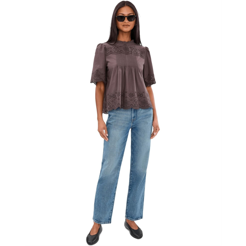 [US] Womens Madewell Embroidered Pintuck High-Neck Top
