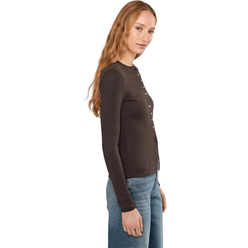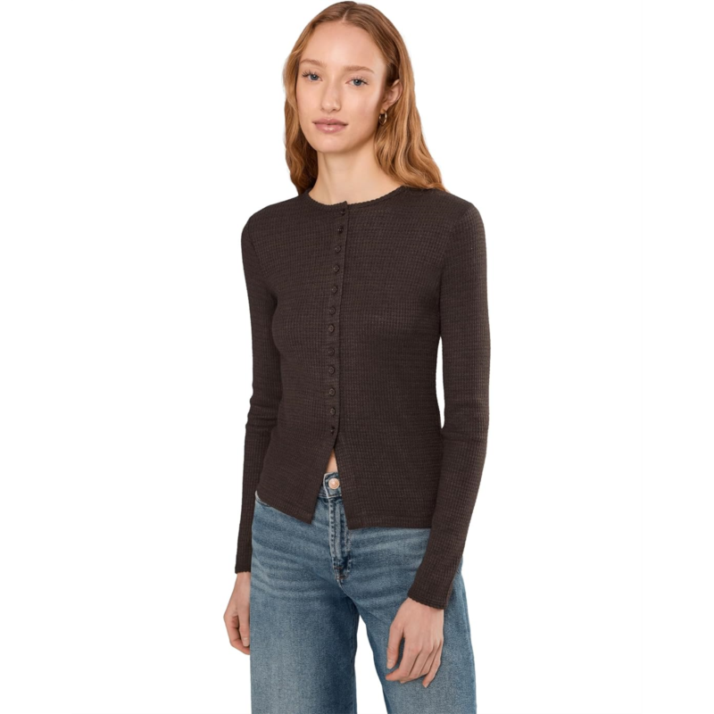 - Enhance your everyday style in the Madewell Joan Crewneck Snitty Waffle cardigan. Featuring a crew neckline with long sleeves, front button closure and a lightweight, super-stretch waffle knit fabrication.