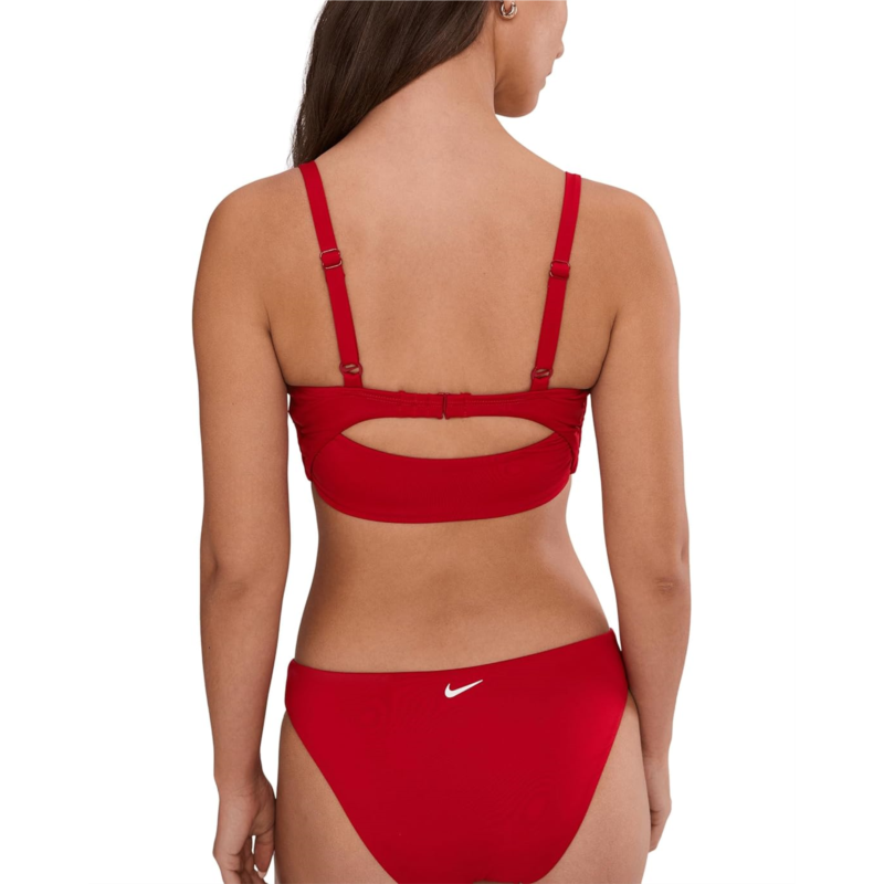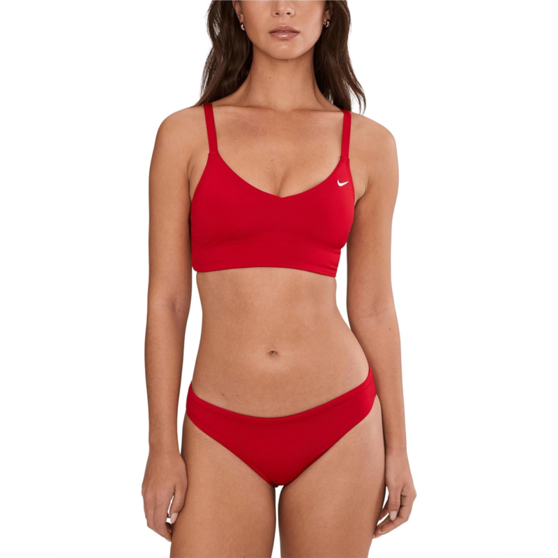 - This Nike Swim Effortless Essential V Neck Midkini offers medium support that gives you a snug feeling and keeps you supported through all-day water activities. The built in shelf bra provides comfortable support, featuring scoop neckline, adjustable straps, hook-and-loop closure, and removable cups.