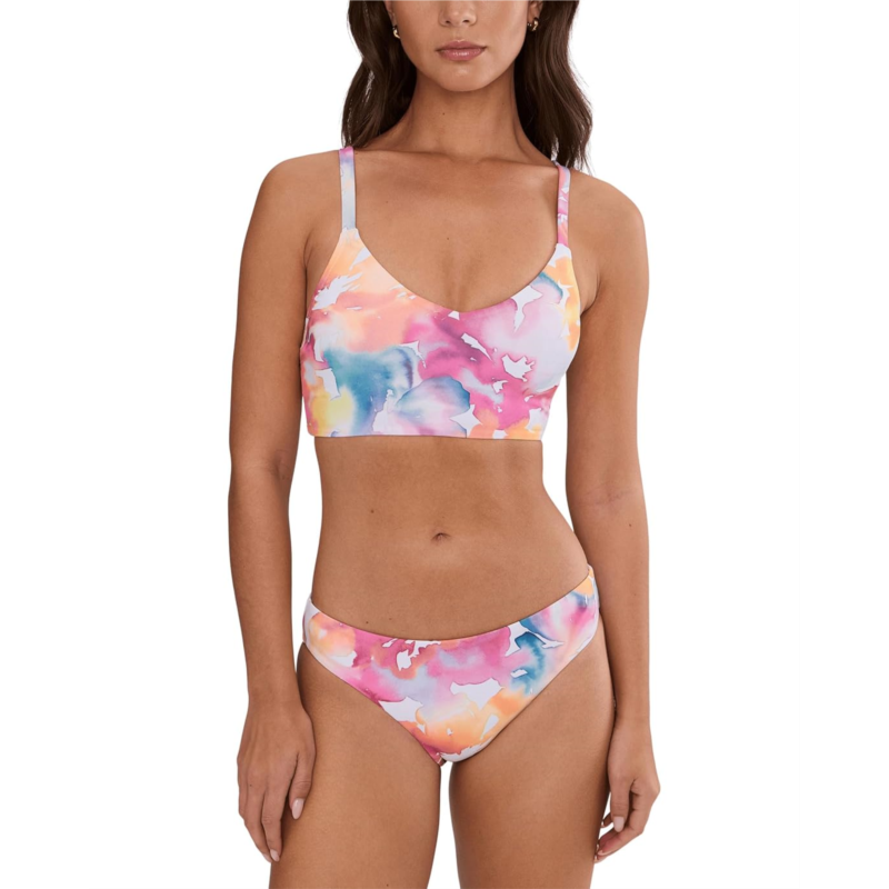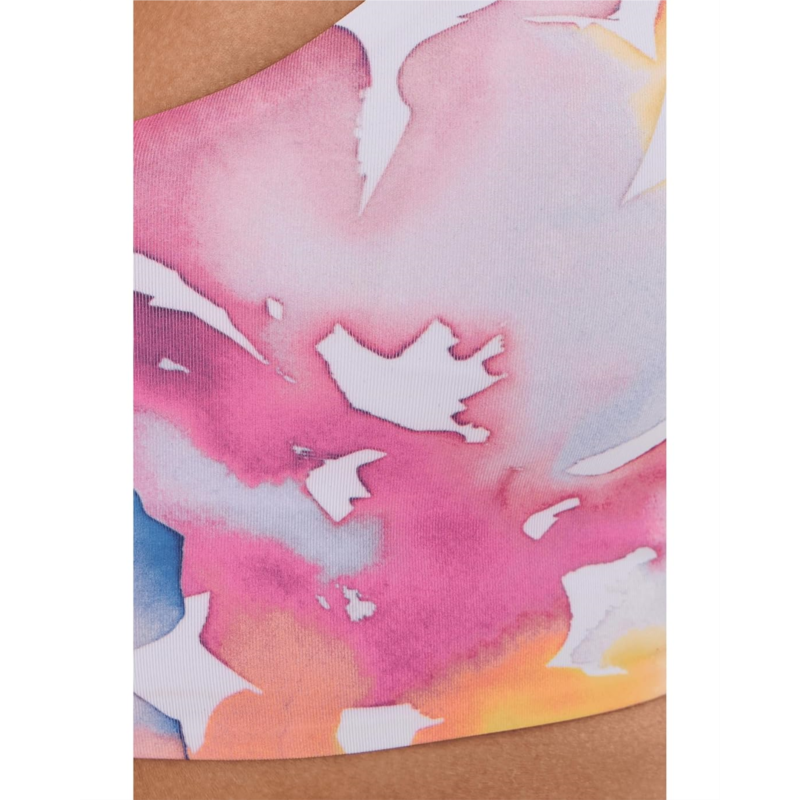 - The Nike Aquarelle V-neck Midkini is crafted from durable, chlorine-resistant fabric that offers all-day comfort. Featuring a tie-dye print allover, this midkini is designed with a built-in shelf bra, adjustable straps, and removable bra cups. It offers medium support and features a hook-and-loop back closure for easy on and off. This floral madkini is a great choice for everyday wear.