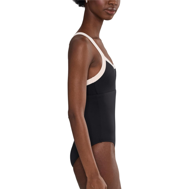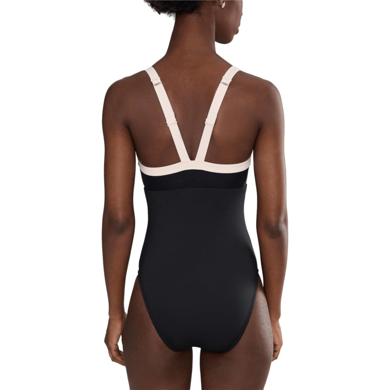 - The Nike Swim Bold Color Block V-Back One Piece offers medium support. This one piece has interior power net to provide smoothing compression and support, strategic mesh vents engineered for maximum water outflow and quick drying, adjustable straps, shelf bra, removable bra cups, mesh insets, medium bottom coverage, and mid cut leg.