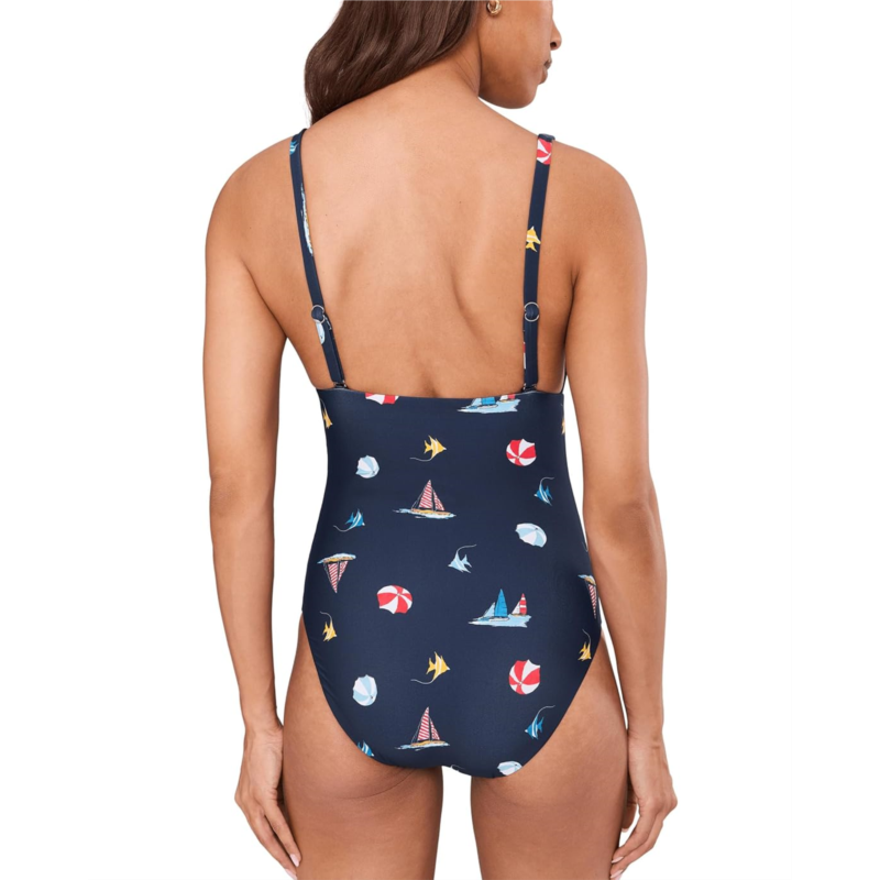 - The Seafolly BeachClub Deep V-Neck One-Piece is a sophisticated swim style designed with both elegance and comfort in mind. Featuring removable cups for customizable shape and support, it offers a flattering fit that adapts to your needs. The scallop trim detail adds a feminine touch, while the adjustable and convertible straps provide versatile styling options. With a regular legline that elongates the silhouette and soft edges for enhanced comfort, this one-piece blends timeless design with functional features.