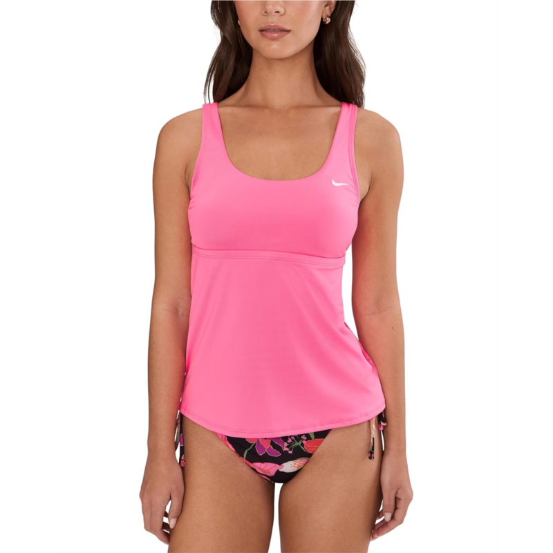 The primary materials that compose this product contain a minimum of 20 percent recycled content.- Sun-soaked confidence meets sporty-chic vibes in the Nike Effortless Essential Scoop Neck Tankini. Designed for women who move with purpose, this sleek swim staple blends timeless style with performance-driven comfort. The flattering scoop neckline creates a feminine silhouette, while the pull-on design makes getting ready for beach days or pool sessions totally effortless. Built for both relaxation and action, it offers medium support with a built-in shelf bra that keeps you secure and comfortable. Removable cups let you personalize your coverage, giving you the flexibility you love.
