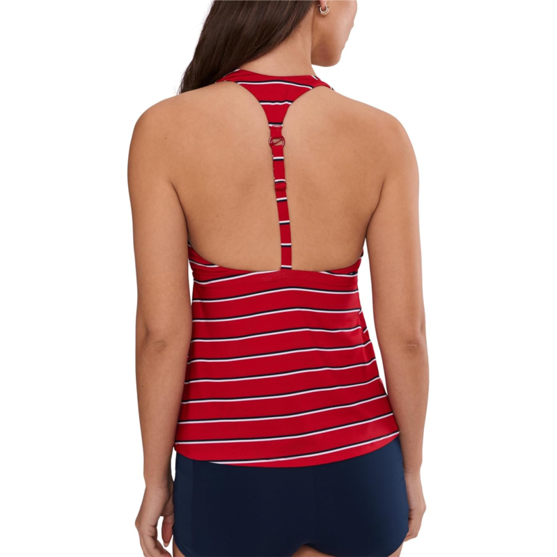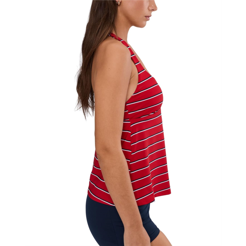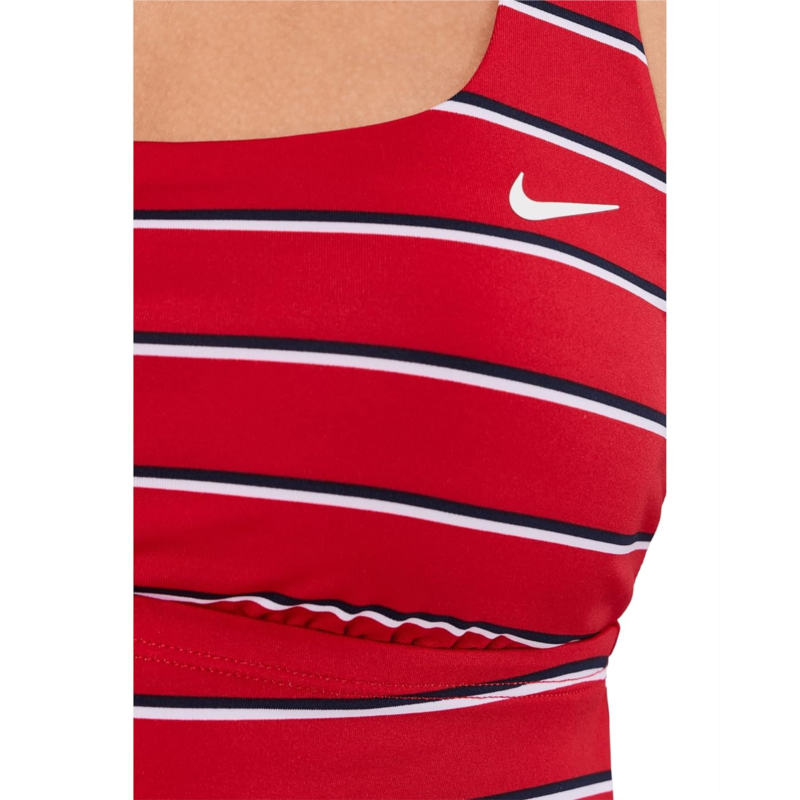 The primary materials that compose this product contain a minimum of 20 percent recycled content.- The Nike Preppy Pinstripe Square Neck Tankini is designed for women who love timeless style with performance-driven power. Crafted from durable, chlorine-resistant fabric, this tankini keeps its shape, color, and sleek look swim after swim. The flattering square neckline adds a modern, structured edge, while the sleeveless silhouette and easy pull-on design make it effortlessly wearable. Built for movement, it offers medium support with a built-in shelf bra and stabilizer cup pockets for a secure, stay-put feel. Adjustable straps let you customize the fit, and removable cups give you flexible coverage options. Finished with a subtle heat transfer Swoosh logo detail, this tankini blends sporty heritage with preppy charm.