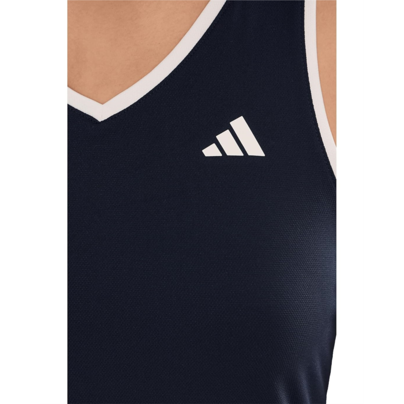 - The adidas Heritage Tennis Tank is a comfortable and fitted tank top featuring contrast ribbing at the armholes, neck, and back. Its polyester blend fabrication offers superior comfort and breathability. This sleeveless tank is styled with a V-neckline, a racer-back design, and a straight hem.