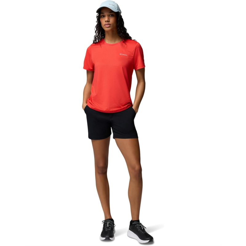 - A tee thats as dynamic as your lifestyle, Columbia Wild Springs Short Sleeve. Designed for adventure and everyday wear, this versatile tee features a classic crew neck, breathable short sleeves, and an easy pull-on design for no-fuss dressing. Crafted from lightweight, moisture-wicking fabric, it keeps you fresh whether youre hitting the trails, strolling through the city, or just kicking back.