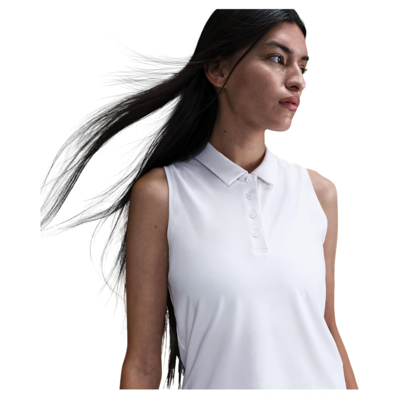 - Stay effortlessly cool and fully engaged wearing the Nike Victory Dri-FIT Sleeveless Polo. Crafted from super-smooth, ultra-stretchy fabric, it moves with you while drying quickly, so distractions stay off the course. Nikes signature Dri-FIT technology wicks sweat away for that fresh, dry feel from first swing to final putt. The athletic fit flatters your form without restricting movement, while the sleeveless cut gives you total freedom to power through every shot. A classic collared neck with a three-button placket adds a polished, sporty touch, making it perfect for both play and post-game plans. Ribbed hem insets enhance flexibility, ensuring every move feels natural and unrestricted. Easy pull-on styling keeps things simple.