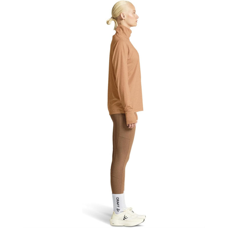 - Flow Half-Zip Long Sleeve for Women is a soft and functional half-zip jersey that excels as both a baselayer and a standalone garment for running, training, powerwalking and similar physical activities. This multi-purpose half-zip jersey is made from a functional blend of recycled polyester and elastane, with a subtly peached surface for a soft feel. The long-sleeve jersey also features a slightly more relaxed fit than traditional tight-fitting baselayers, enhancing versatility and adaptability. Wear it solo or layer under a jacket or mid-layer shirt for added insulation in colder conditions.