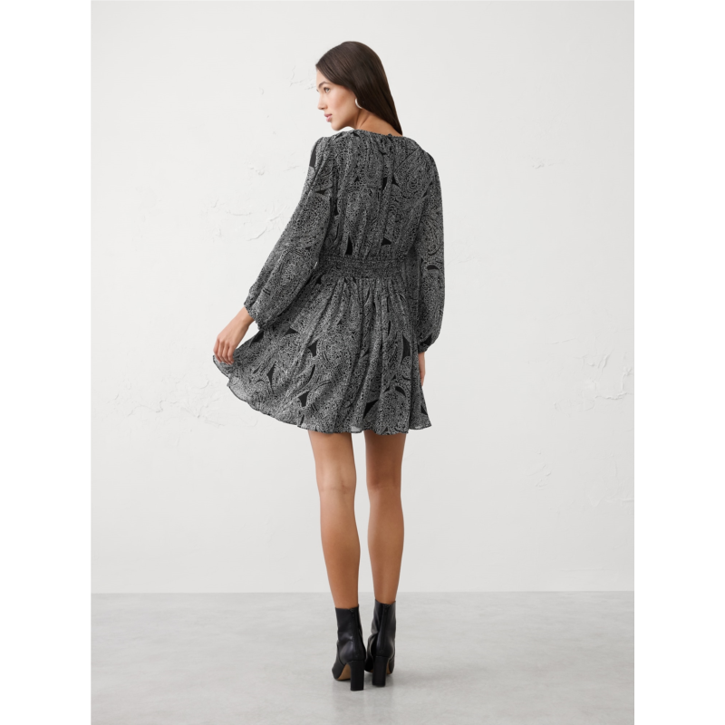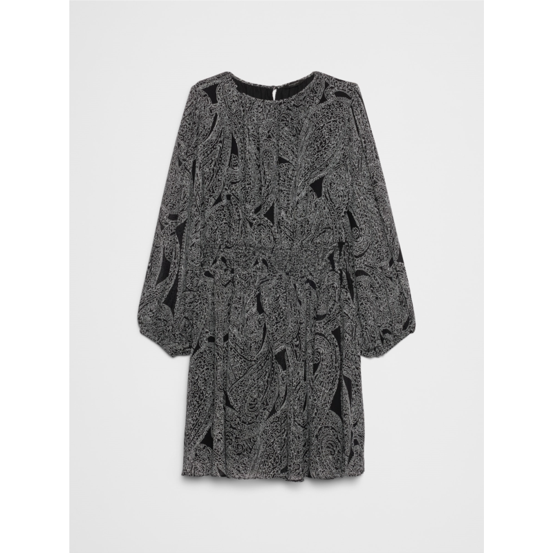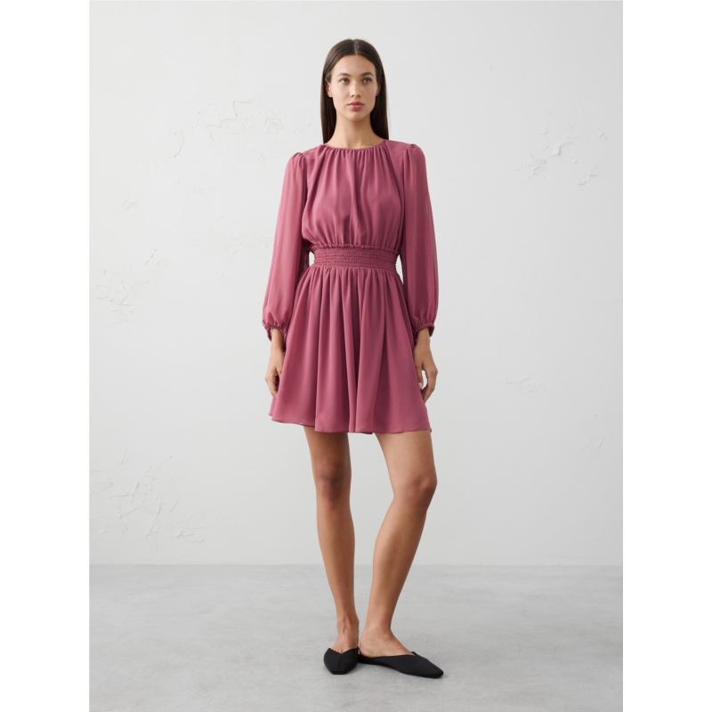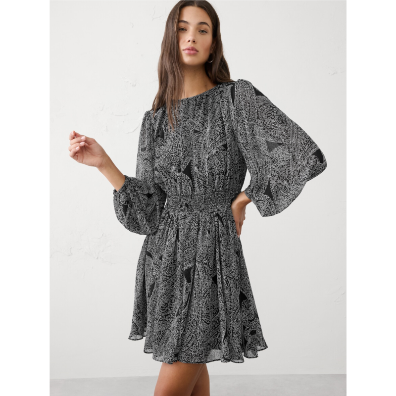 [US] bananarepublic Smocked Volume-Sleeve Mini Fit-and-Flare Dress