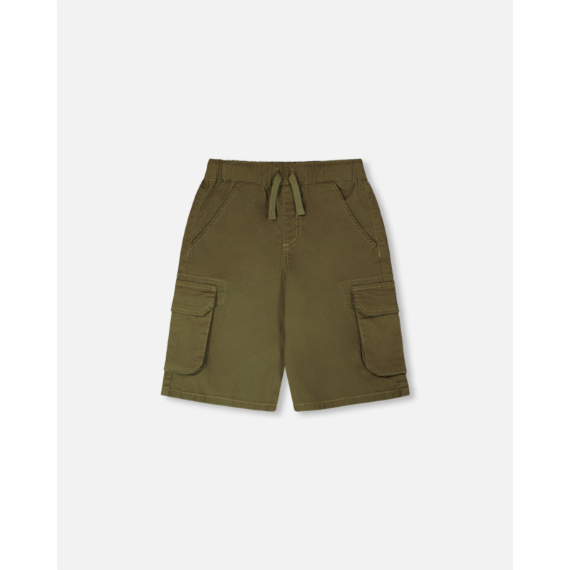 [US] Deux par Deux stretch twill bermuda with cargo pockets dark khaki green