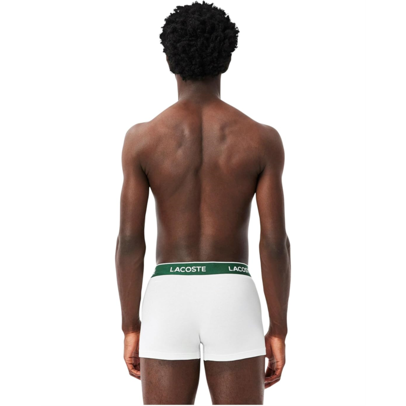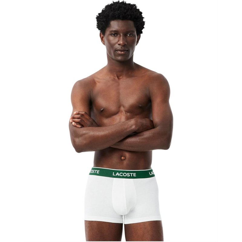 - The Lacoste Cotton Stretch Essentials Trunks 3-pack offer all-day comfort and support for various activities. These feature a comfortable mid-rise elastic waistband and a soft brushed interior that prevents irritation when worn. The allover branded waistband with contrasted wording and stripe on top adds an authentic touch.These are expertly designed to provide a secure fit that stays in place without pinching or discomfort.