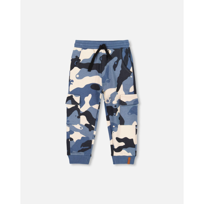Deux par Deux fleece sweatpants with cargo pockets blue camouflage