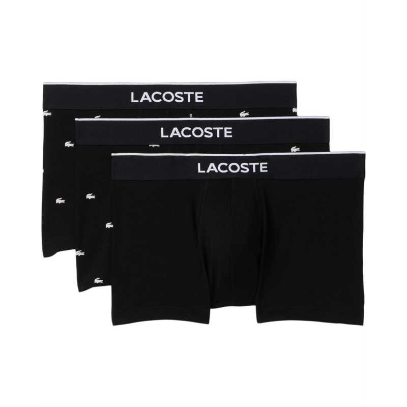 - Introducing the Lacoste 3-Pack Printed Stretch Trunks, where everyday wear meets modern sophistication. Designed with a flattering mid-rise fit and convenient pull-on style, these trunks deliver effortless ease for all-day confidence. The stretch fabric construction ensures breathable flexibility, moving with you while maintaining shape and support. A comfortable elasticized waistband featuring Lacostes signature logo hit keeps everything secure without pinching or rolling, so you can enjoy a sleek, second-skin feel from morning to night. Showcasing the classic Mini Croc print, each pair balances timeless flair with contemporary edge, while the jacquard waistband with Lacoste branding and a crisp white stripe at the top adds a refined finish.
