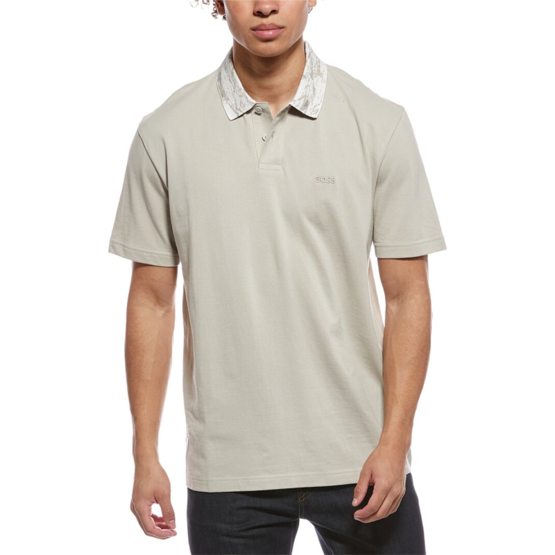 - Desert Collar Polo Shirt In Light Beige With Spread Collar, And Ribbed Trim