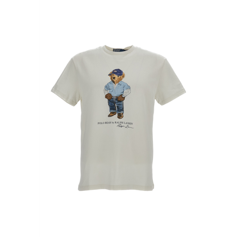 Elevate your casual wardrobe with this cotton crew neck T-shirt by Polo Ralph Lauren, featuring a striking front print of a bear dressed in stylish attire. This piece embodies a clean silhouette with its regular fit and ribbed collar, enhanced by intricate embroidered details and a printed logo beneath the graphic, making it a conversation starter for any occasion. - Material - 100% Cotton - Fit - Regular - Color - White