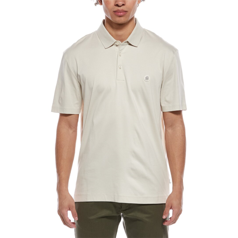 - Parris Polo Shirt In Open White With Ribbed Trim, And Spread Collar