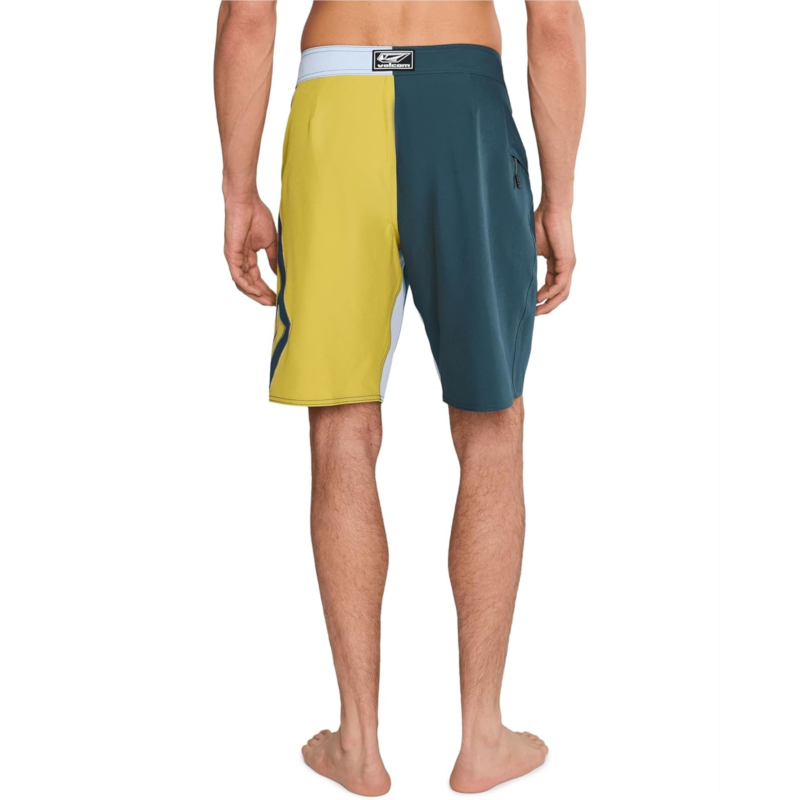 - Ride the wave of effortless style in the Volcom Foster Mod 21. Designed with a sleek low-rise fit, these shorts deliver a modern, laid-back look that feels as good as it looks. The secure drawstring closure allows you to adjust the fit perfectly, keeping you comfortable whether youre hitting the waves, relaxing by the pool, or enjoying a sunny beach day. Built for both style and function, the side welt zip pocket safely stores small essentials while maintaining a streamlined silhouette. The inset leg panel enhances flexibility and mobility, making movement smooth and natural. Featuring innovative Cinch Fly Technology, these boardshorts provide a secure, hassle-free closure that stays in place during active adventures. Finished with signature woven Volcom labels.