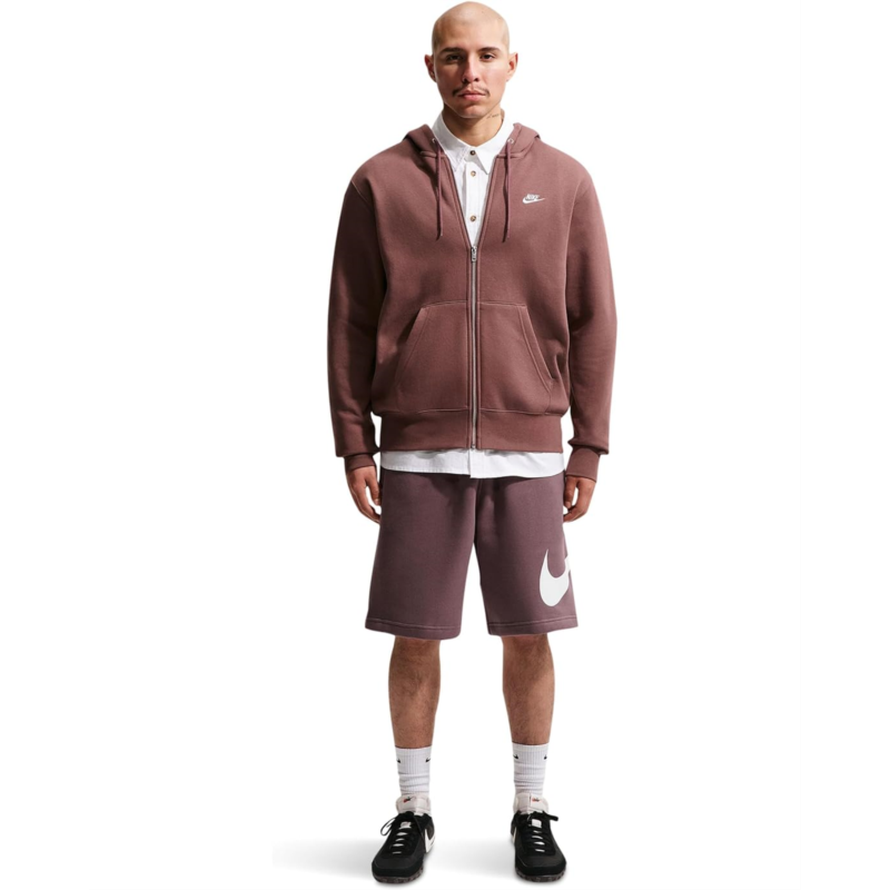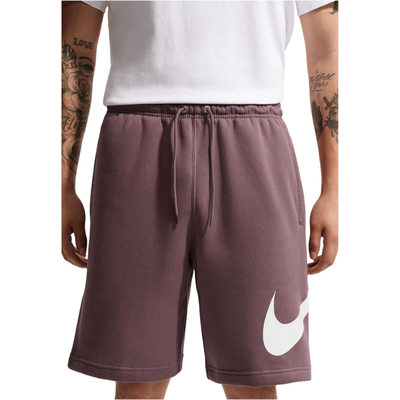 - The Nike Club Fleece Shorts feature an elasticized waistband and external drawcord that deliver a comfortable, custom fit at your waist. Cut in a mid-thigh length, these pull-on shorts are made from a cotton blend that takes your comfort to the next level. Their standard fit feels relaxed through the seat and thighs, while the two front pockets and a back pocket fit most phones and small items.