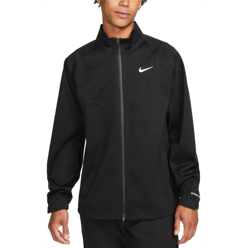 The Mens Full Zip Golf Jacket by NIKE is a sleek and stylish choice for the modern golfer. Crafted with long sleeves and a mockneck, this solid black jacket offers a contemporary look perfect for spring vacations. Its lightweight design features a convenient zip closure, ensuring easy wear and a comfortable fit.