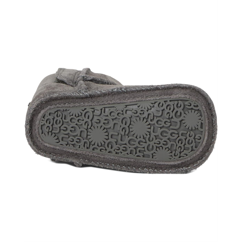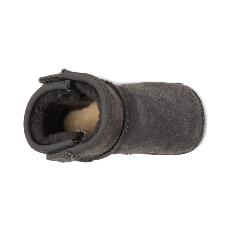 - Pick these UGG Kids Classic boots are ideal to walk on the snow during chilly winters. The round toe boots have hook and loop closure strap. The shoes are made of cow suede upper, 10 mm UGGplush upcycled lyocell wool lining, and footbed.