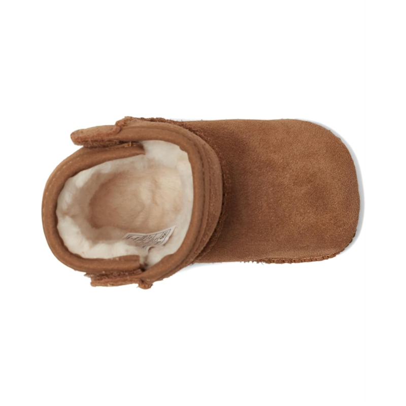 - Pick these UGG Kids Classic boots are ideal to walk on the snow during chilly winters. The round toe boots have hook and loop closure strap. The shoes are made of cow suede upper, 10 mm UGGplush upcycled lyocell wool lining, and footbed.