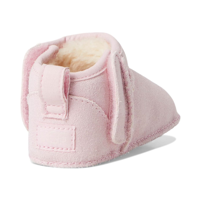 - Keep their feet warm and cozy in the UGG Kids Baby Classic Ultra Mini Dazzle. Crafted from a suede upper, these boots feature a hook-and-loop closure, making it easy to take on and off, as well as a round toe silhouette and a pull tab in back for easy entry.