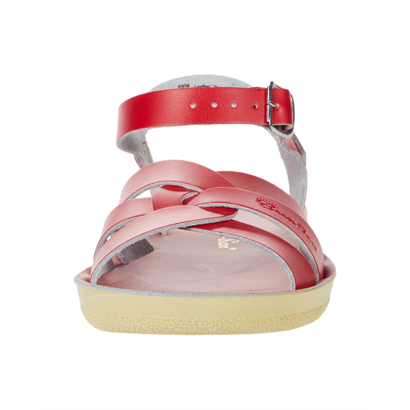 - Rust-proof brass buckles and scuff-resistant, water friendly genuine leather make the Salt Water Sandal by Hoy Shoes Swimmer ideal for in-and-out of water wear. They clean up so easily, and with proper care will last for years. These are great summer sandals.