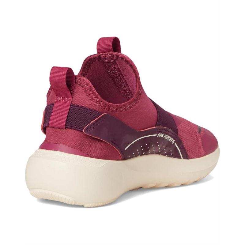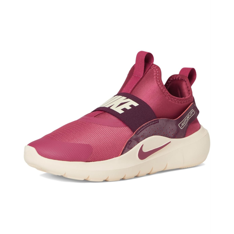 - With the Nike Kids Flex Runner 4, every step is a flex. With a breathable mesh upper and durable synthetic rubber lining, these pull-on sneakers are made for kids on the go. Easy pull tabs on the heel and tongue pair with a stretchy inner sleeve for a hassle-free fit, while elastic straps across the foot deliver a snug, locked-in feel. Flex grooves in the rubber outsole make every step smooth and natural, while multi-surface traction and sturdy heel foam give grip and support through sudden turns. Reinforced toe boxes and tough materials keep up with wild playground adventures. Plus, soft foam cushioning keeps little feet comfy from the first dash to the final jump.