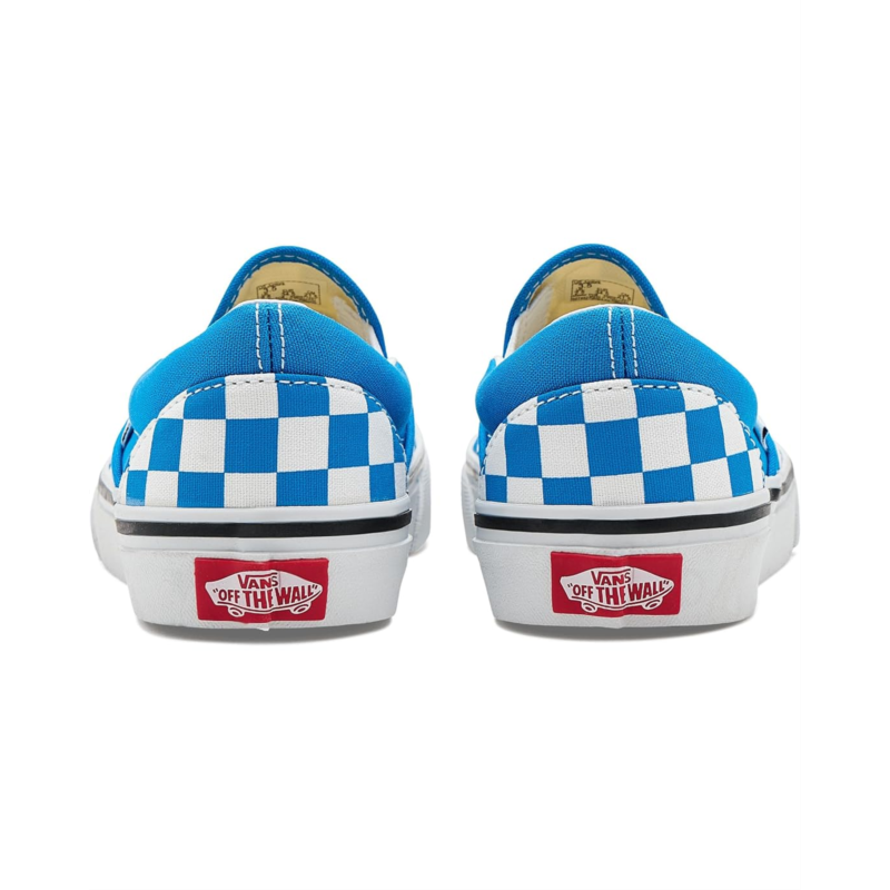 - Retro lines for the next generation! From their favorite flannels, to tried and true denims, style up your kids outfits with these Vans Kids Classic Slip-On sneakers. These iconic low-profile kicks are designed with a comfortable padded collar and dual goring insets that seal the old-school deal. They feature a round toe silhouette in a patterned textile upper. These low-top shoes are made of a textile insole and lining. Their platform midsole is styled with a signature Vans heel patch. These slip-on sneakers make all-day wear a no-brainer.