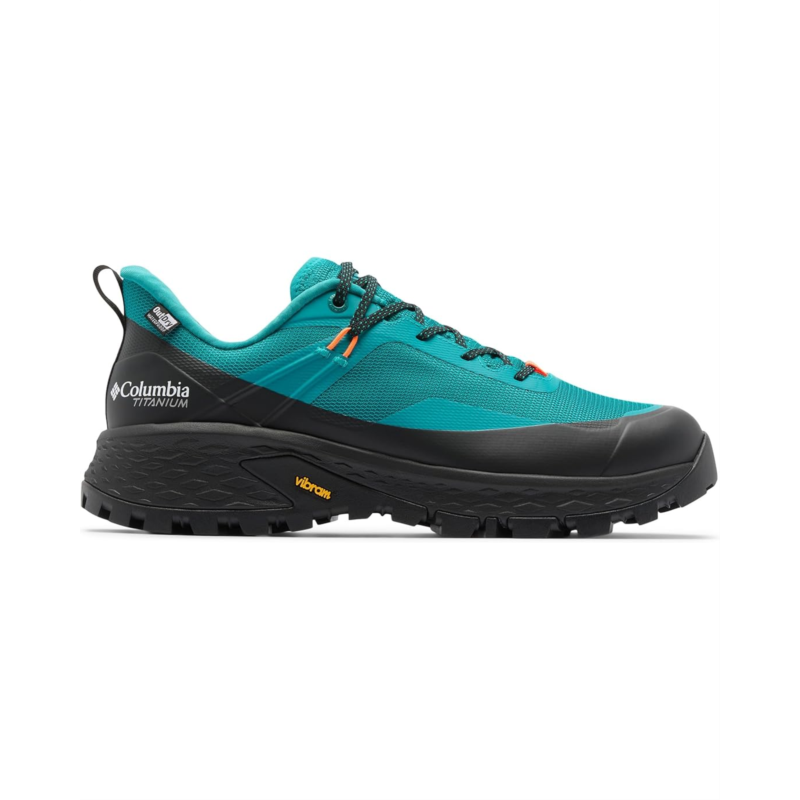 - Look and feel good whatever the weather with the Columbia Tellurix Titanium Outdry shoes. These low-top shoes feature a Navic Fit System that delivers a natural midfoot lockdown. Their engineered Techlite+ midsole cradles the heel for optimal balance, while the deflection domes in the forefoot and heel absorb impact, working together to reduce stress on the foot. The deep flex grooves in the forefoot offer enhanced motion, allowing for a more efficient stride. These shoes are made of a canvas upper with no-sew overlays for added durability and support. Their rubber insole provides cushioned comfort. The Outdry waterproof breathable construction keeps your feet comfortable and dry. Partnering with industry-leading traction experts, these lace-up shoes feature a Vibram Megagrip rubber outsole that provides necessary mud release and maximized surface contact. Their molded Techlite Eco insole uses 20% recycled content for long-lasting support, cushioning, and performance. Conquer rugged terrain with these shoes, designed for stability, protection, and all-day comfort.
