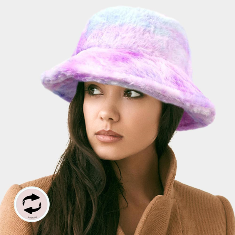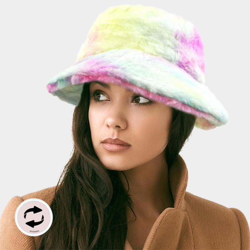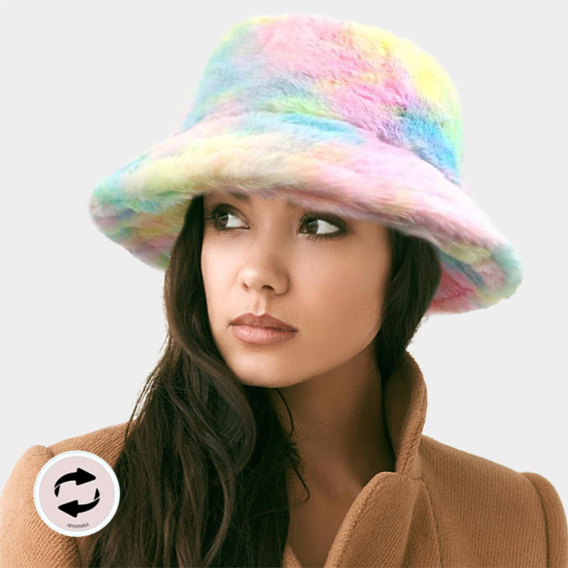 [US] FASHNZFAB reversible colorful soft faux fur bucket hat