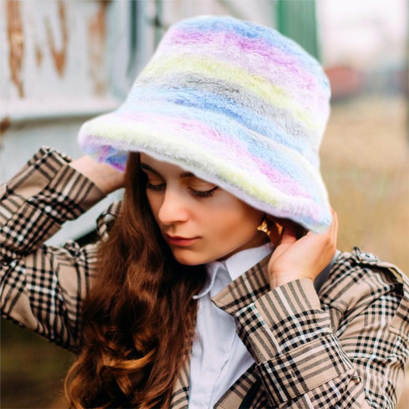 [US] FASHNZFAB rainbow faux fur bucket hat