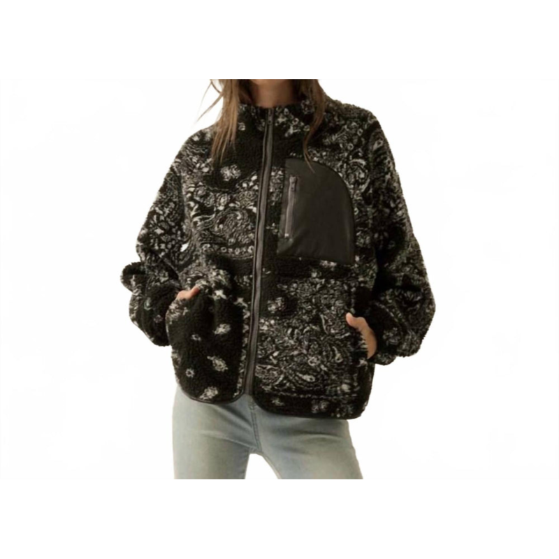 [US] PROMESA paisley sherpa long sleeve jacket in black white