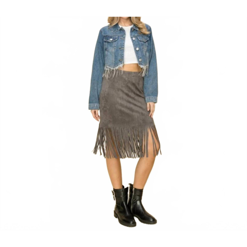 VOCAL APPAREL rhinestone hem denim jacket in medium blue