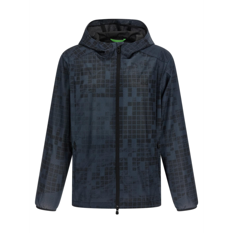 jump jt windbreaker in patterned water-repellent technical fabric, Hood, High neck, Front zip closure, Pockets, Long sleeves with cuffs, Drawstring on the hem. true to size fit Size - M