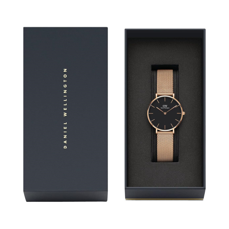 The Daniel Wellington 32 mm Petite Evergold Mesh Watch offers grace, simplicity, and elegance.