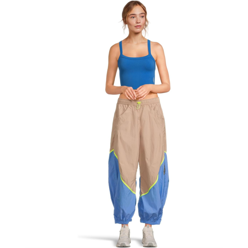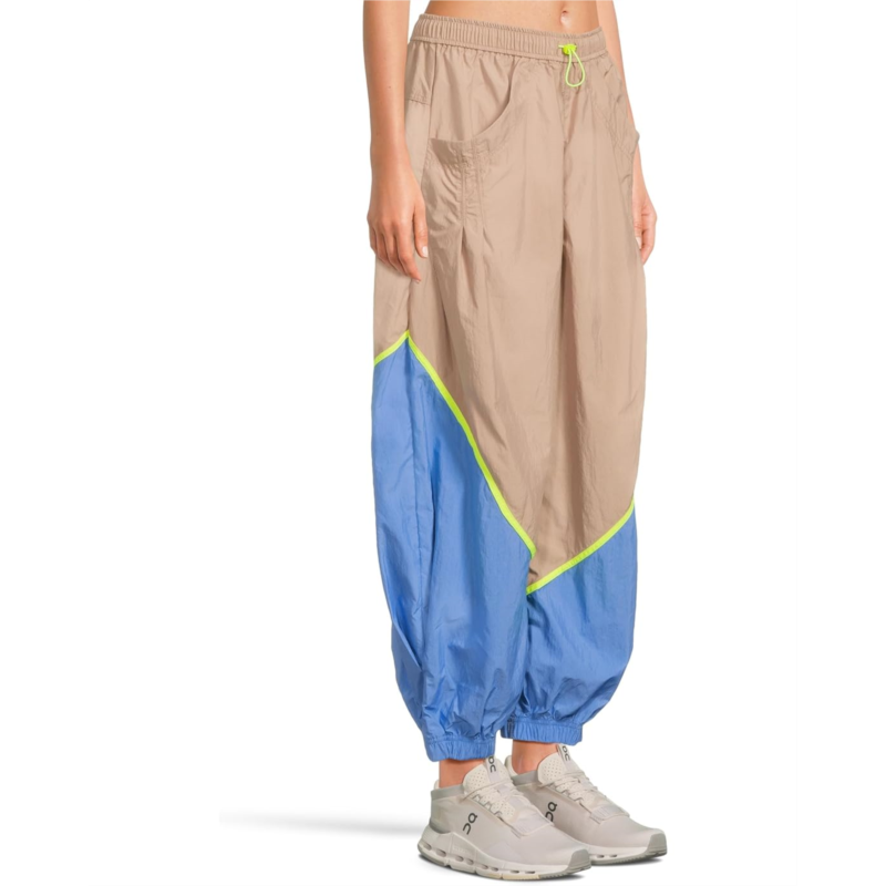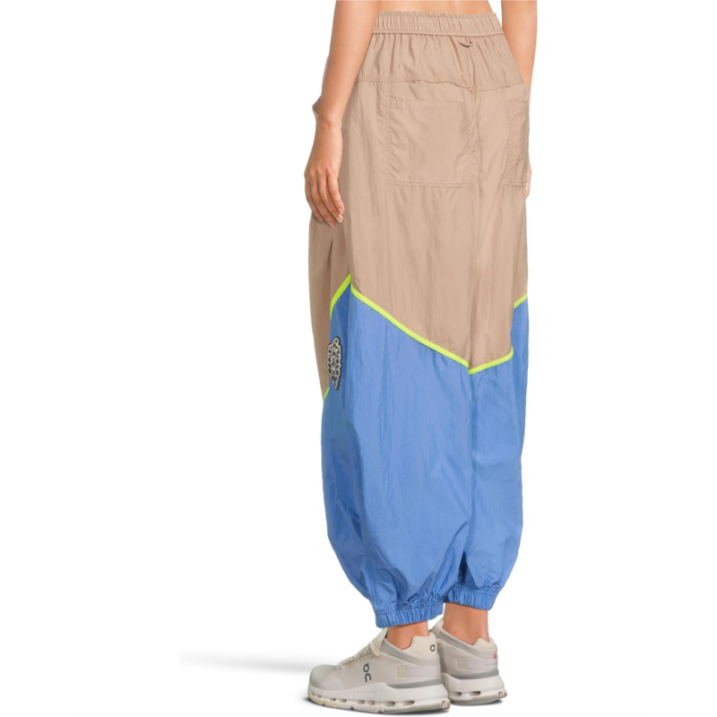 The FP Movement Freflow Pants are slouchy, mid-rise active bottoms designed for effortless movement and laidback style. Crafted from lightweight fabric, they feature a color-block design, mocked elastic waistband with adjustable drawcord, and cinched bottom hems for a relaxed yet secure fit. With slip pockets on the front and flap patch pockets at the back, they''re as functional as they are stylish.