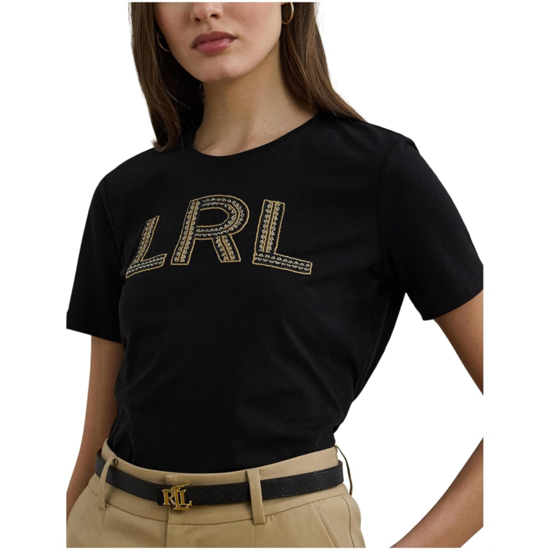Made with soft cotton jersey fabric, the LAUREN Ralph Lauren Beaded-logo Cotton Jersey Tee displays Laurens geometric beaded logo at the chest for iconic style. It features a crew neckline, short sleeves, and offers pull-on ease.