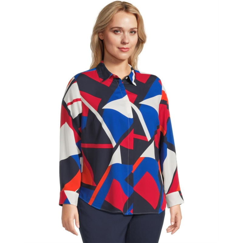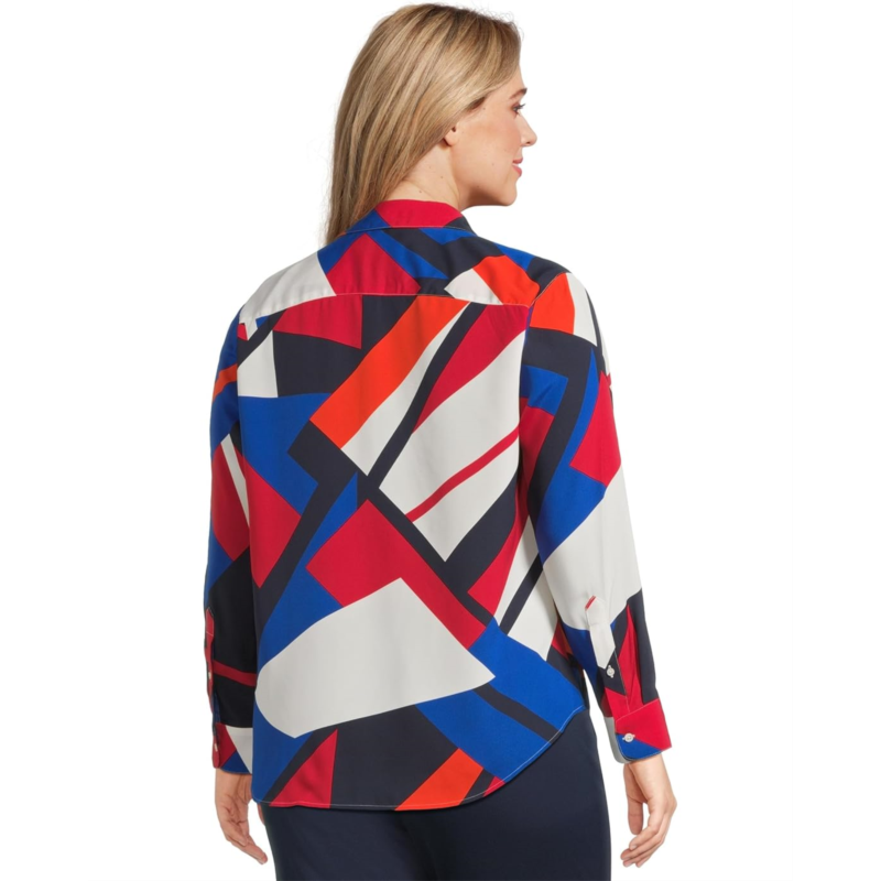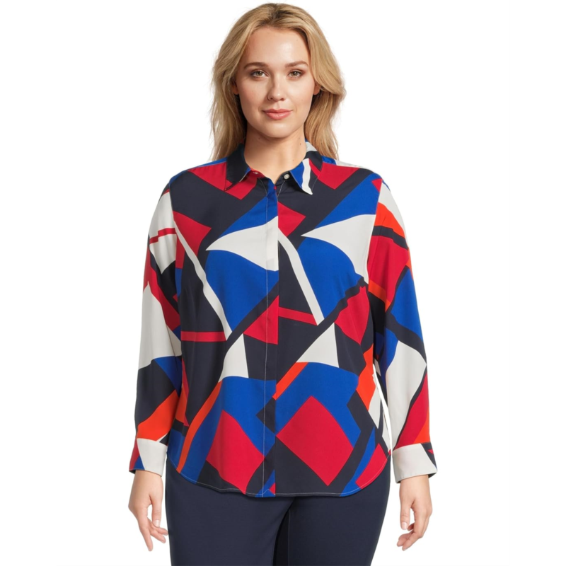 Crafted from airy crepe de chine, the Lauren Ralph Lauren Plus Size Classic Fit Print Crepe Shirt combines sophistication with comfort. Featuring a graceful sailboat-inspired abstract motif, it boasts a point collar, concealed button placket, and engraved buttons for refined detailing. The straight fit, shirttail hem, and back yoke ensure a polished silhouette, while the lightweight fabric drapes beautifully at the hip. Long sleeves with buttoned barrel cuffs add versatility, making it perfect for work or weekend adventures.