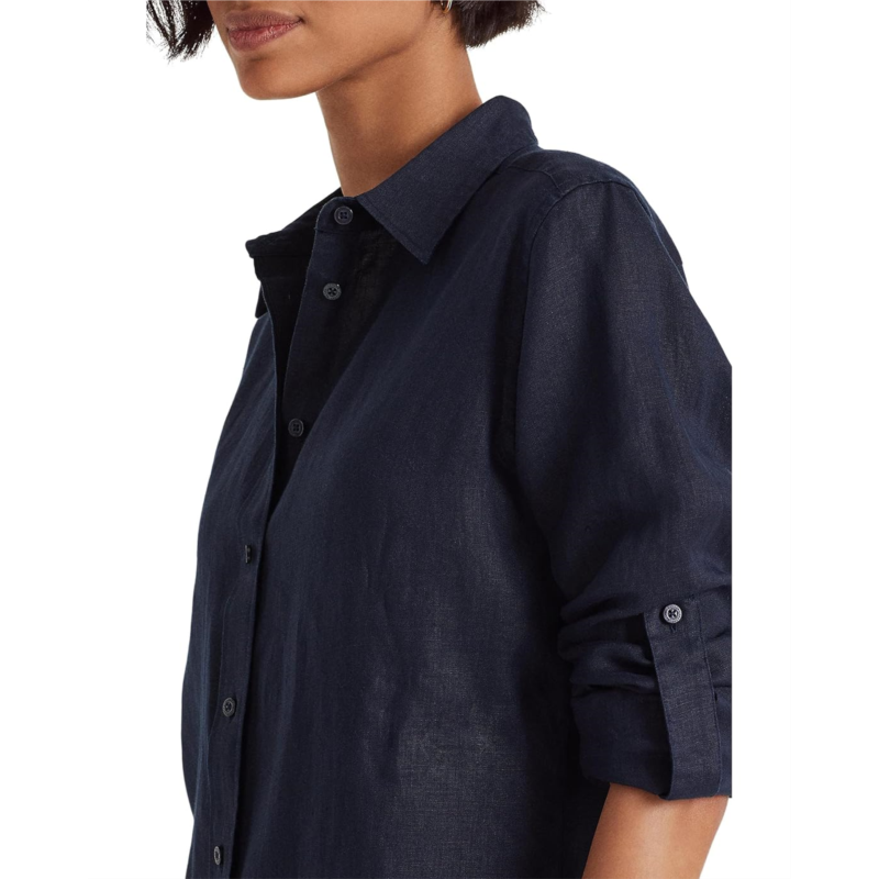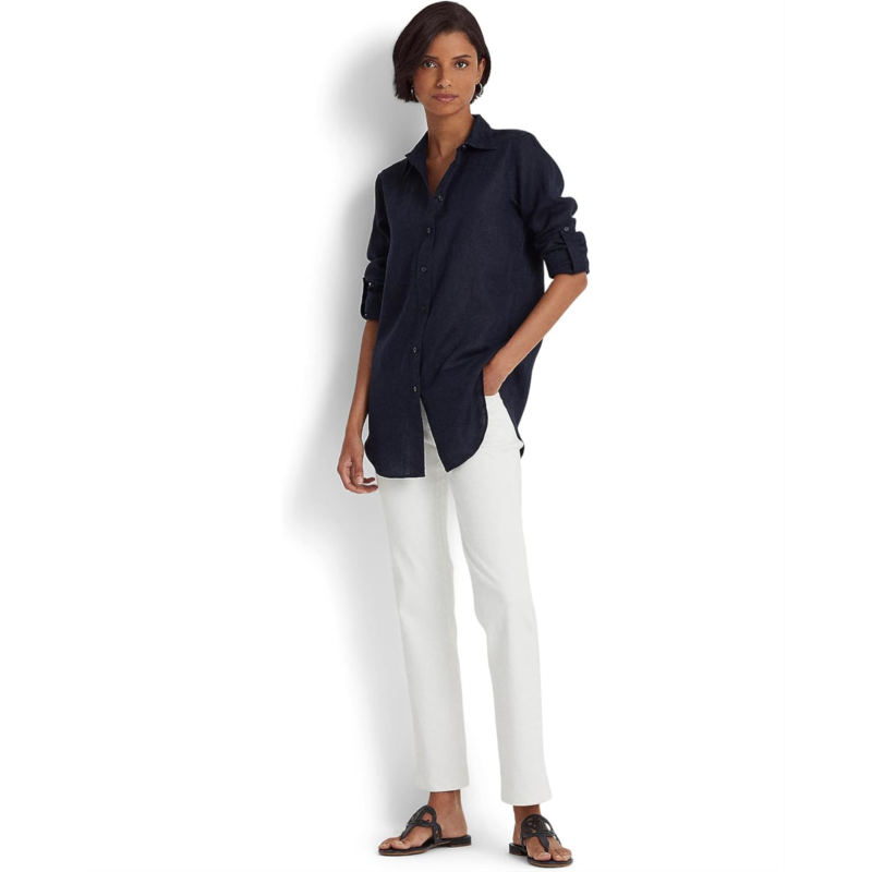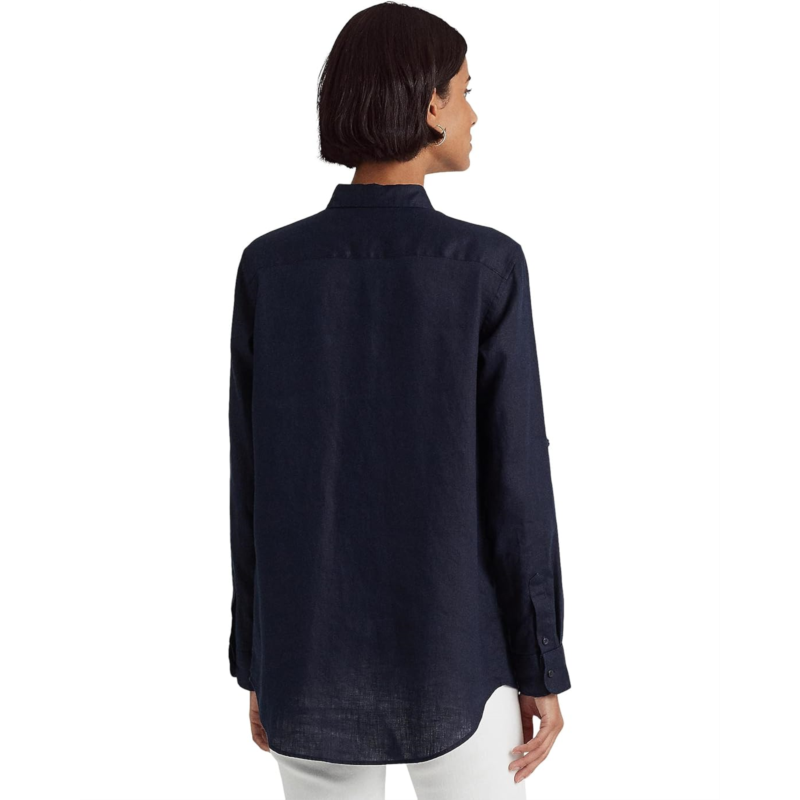 Light-as-air linen makes this shirt, designed with long roll-tab sleeves, a must-have for the season. Featuring a point collar, a buttoned placket with LAUREN Ralph Lauren-engraved buttons, long roll-tab sleeved with buttoned barrel cuffs, and pleating at the cuffs. An effortless refresh to your everyday style!