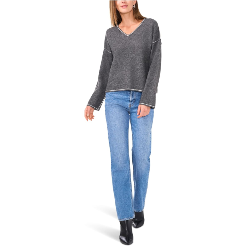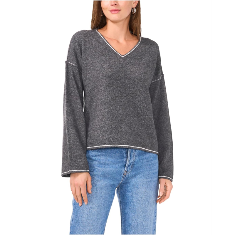 Vince Camuto V-Neck with Contrast Crochet Stitch At Seam