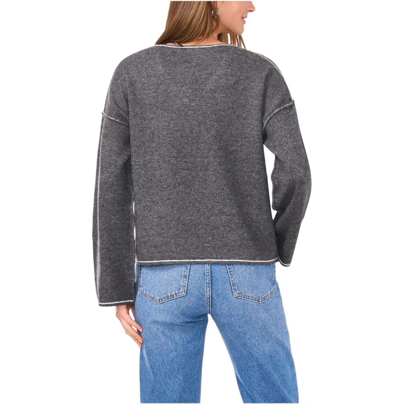 [US] Vince Camuto V-Neck with Contrast Crochet Stitch At Seam
