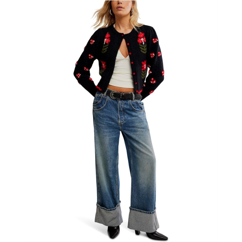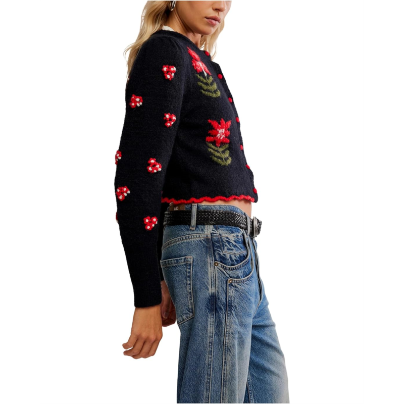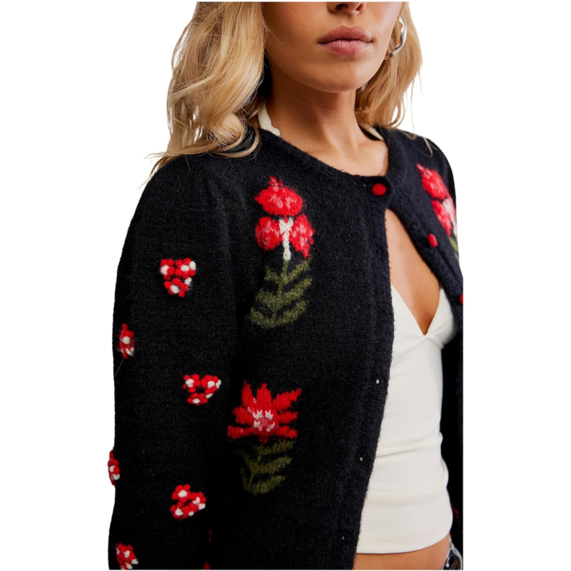 Liven up your everyday style in the Free People Nonna Sweater. Crafted from a soft knit fabrication, this cardi features a round neckline, balloon sleeves, front button closure, and embroidered detailing.