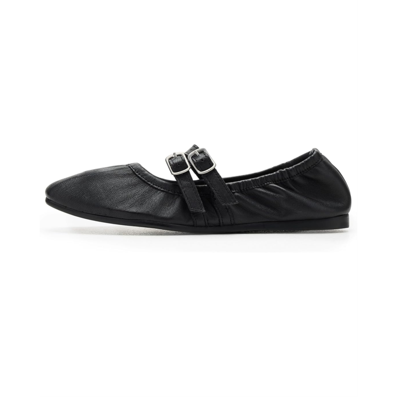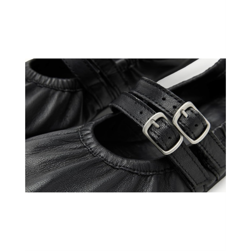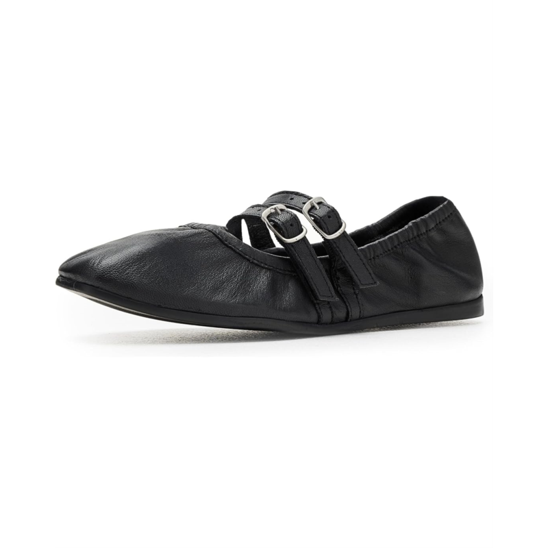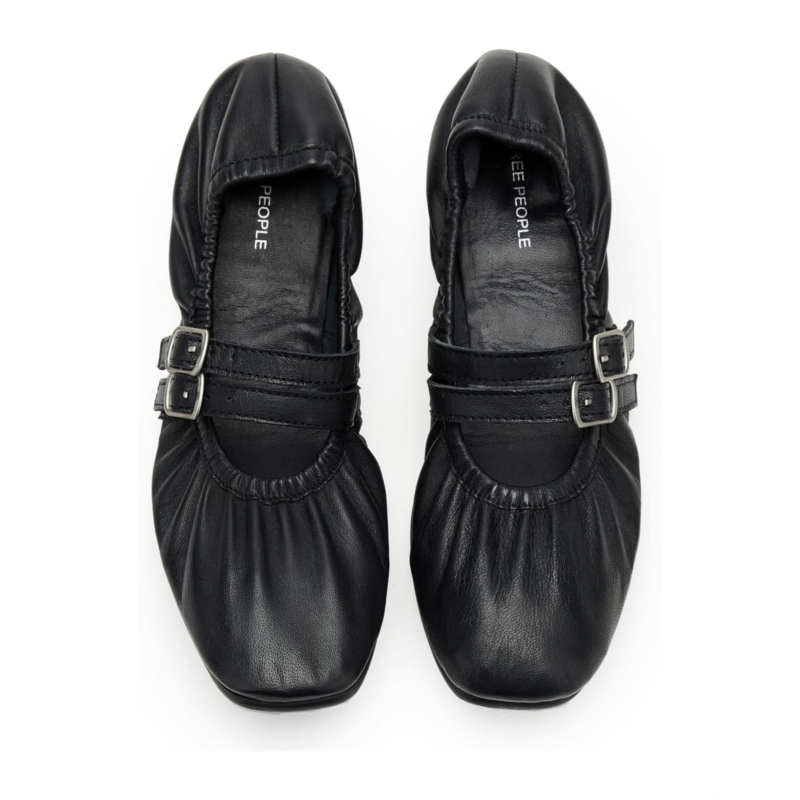 Leave everyone flattered with your graceful dance moves wearing the Free People Gemini Ballet Flats. Featuring midway double buckle straps, the footwear has shiny leather upper construction with a round toe silhouette and synthetic outsole.