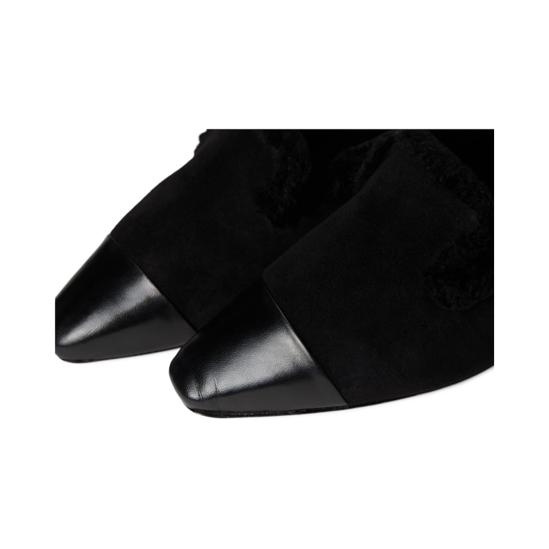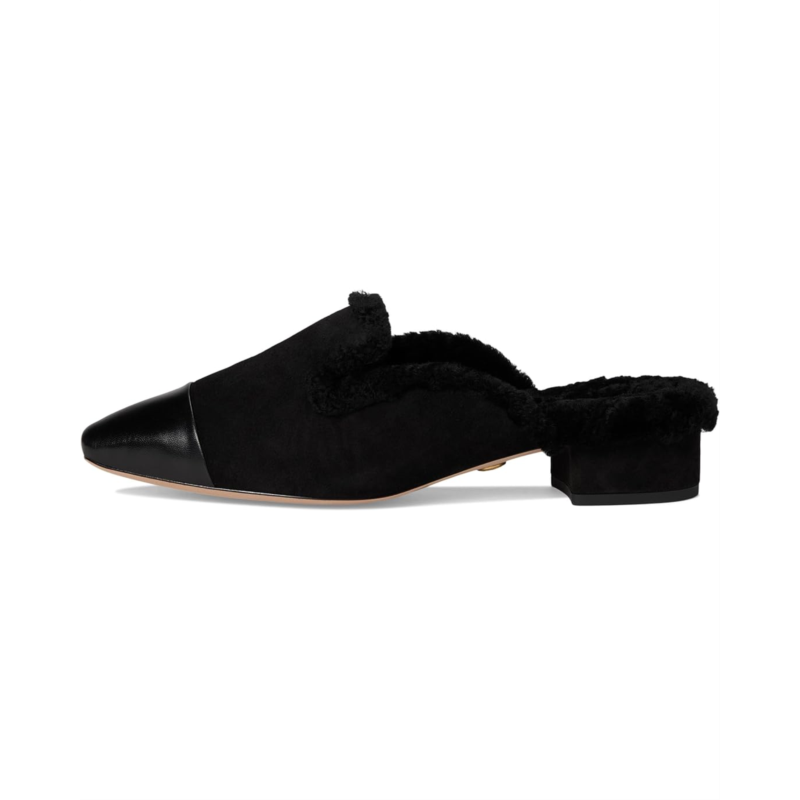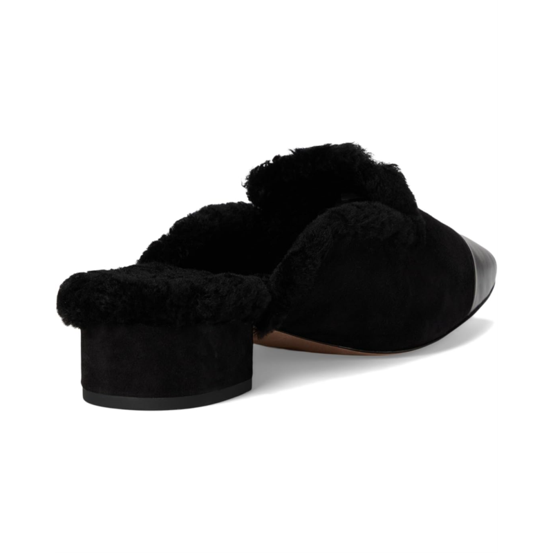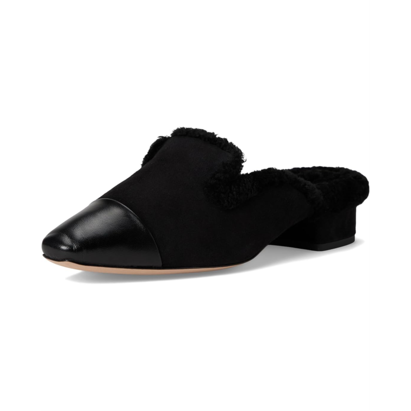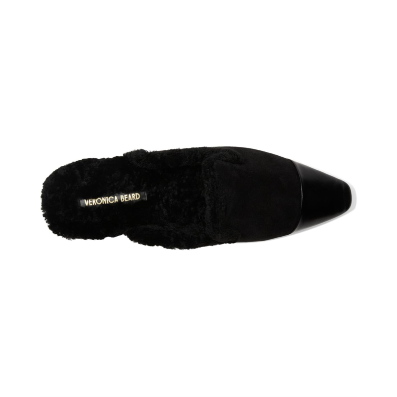 Look chic from morning to midnight wearing the classy Veronica Beard Cecile Mule Fur Mules. Crafted from suede upper, faux fur lining, and leather insole, this pair of sandals features slip-on mule silhouette, tonal cap toe, low-block heel, and brand detailing on the footbed.