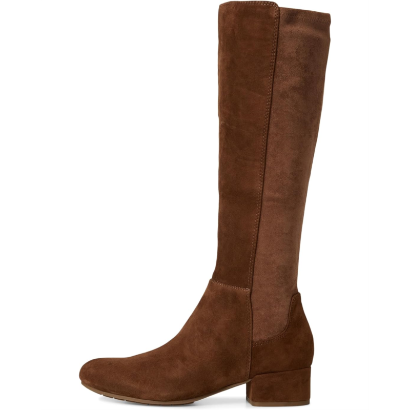 Kickstart your new-season wardrobe with the Dune London Tayla knee-high boots. Crafted in-house with premium suede upper, set on a low block heel with a stretch back for the perfect fit. These boots are a go-to style for days you need to look stylish and be on your feet all day.