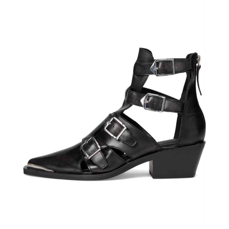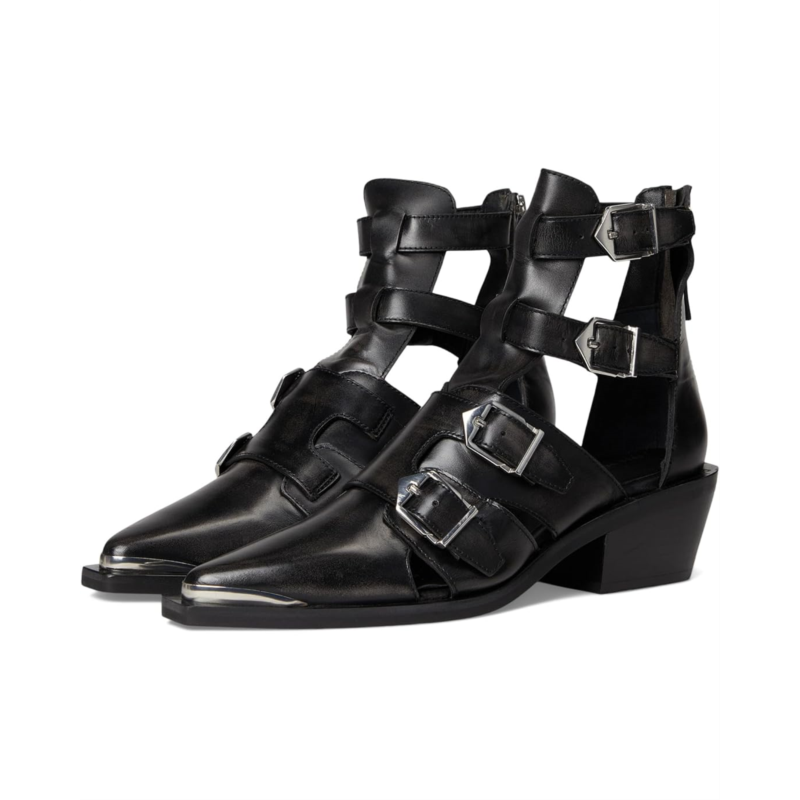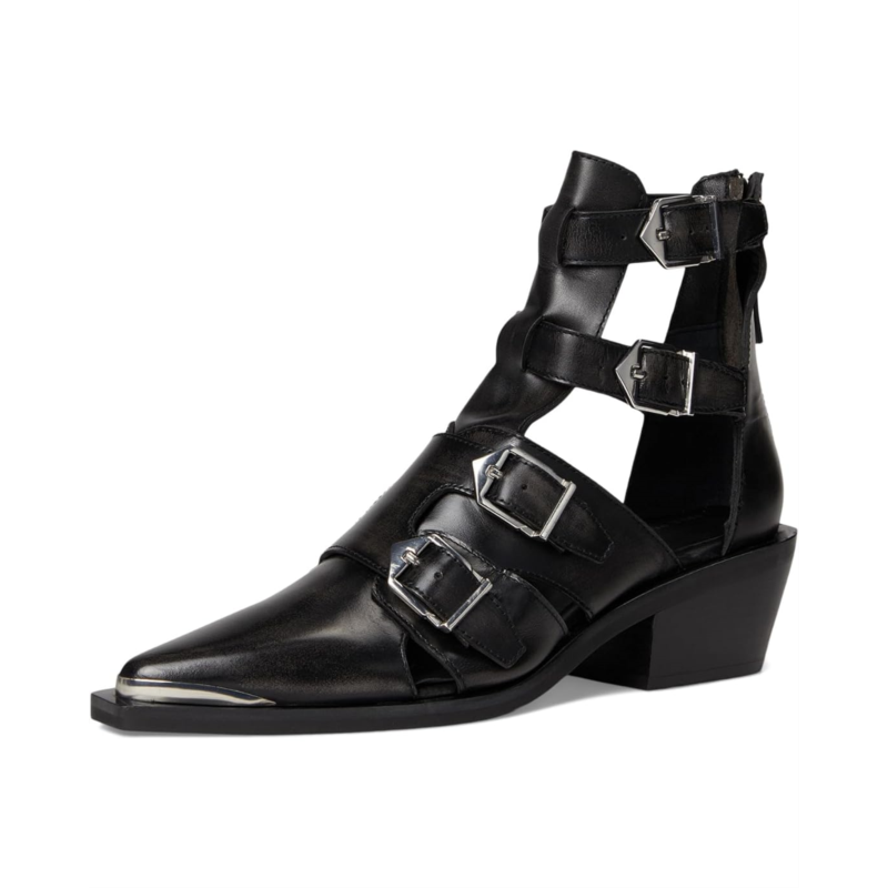 Edgy buckles and bare sections make these Free People Helen Hybrid Boots total head-turners. Crafted in leather upper with a snip toe design and open, cut-out sections, they strike a balance between daring and wearable.Why We<3 It:The perfect transitional style that can stand the heat or be bundled up.
