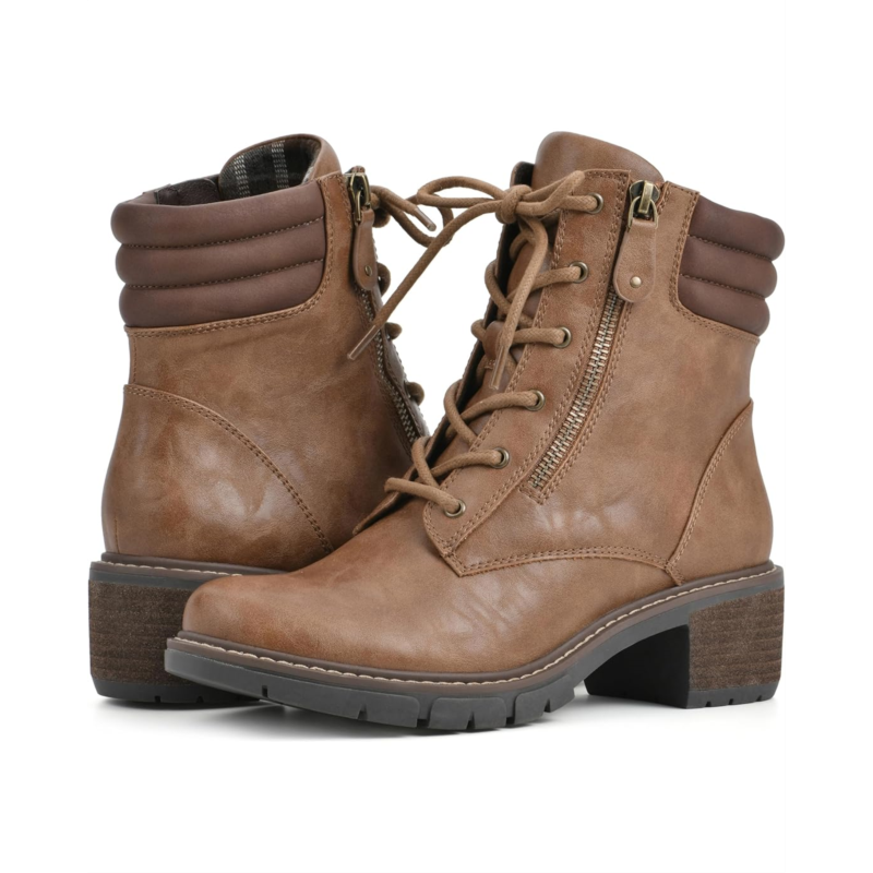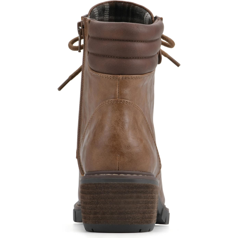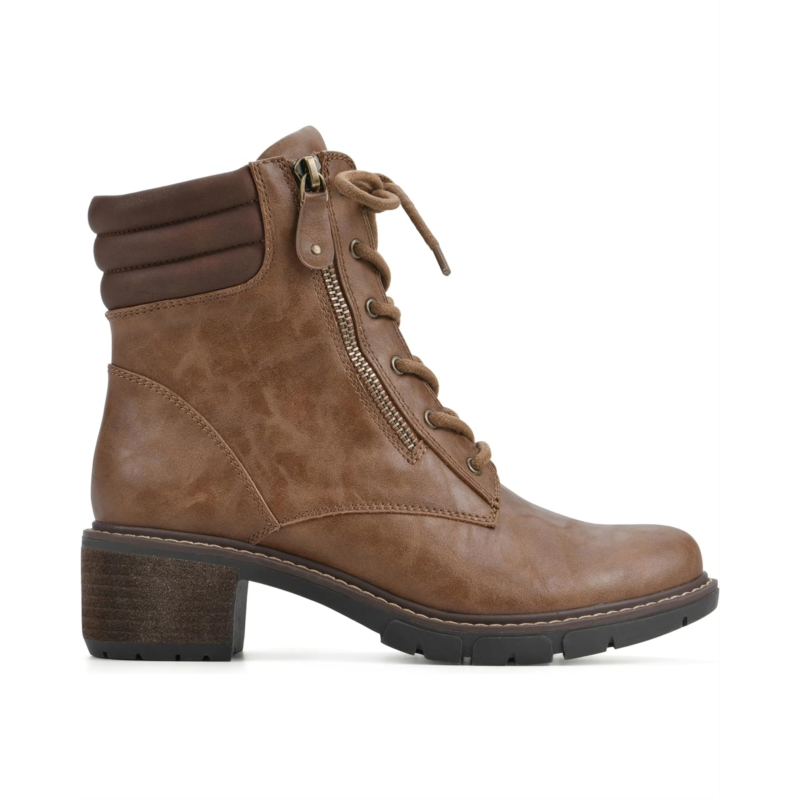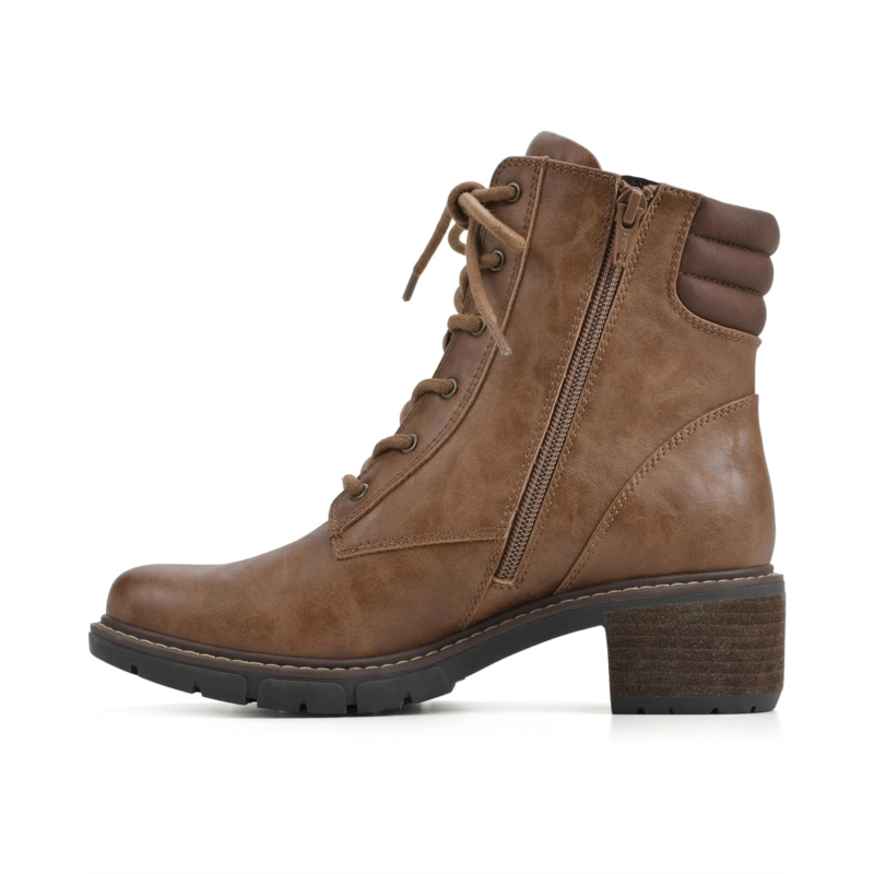 Stack your feet in extravagant style and comfort wearing the White Mountain Crazies Lace-Up Boots. This ankle-high footwear features durable man-made upper with textile lining and cushioned insole. With an alternative zippered side closure, this round toe pair has stacked heels and a moc toe silhouette.
