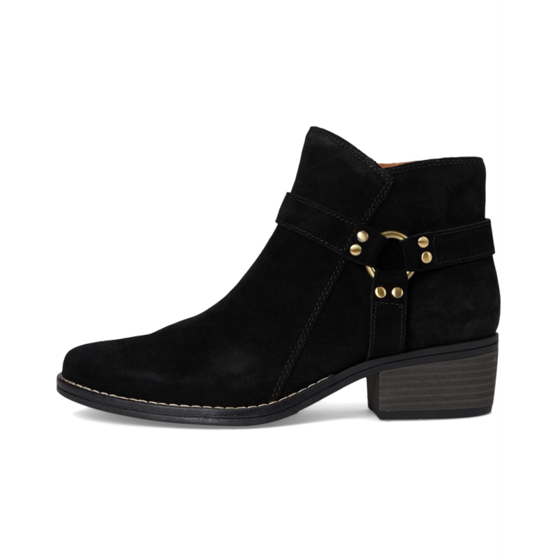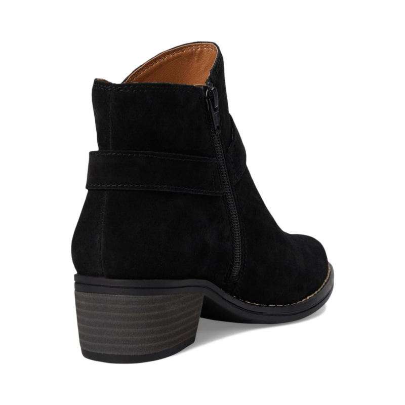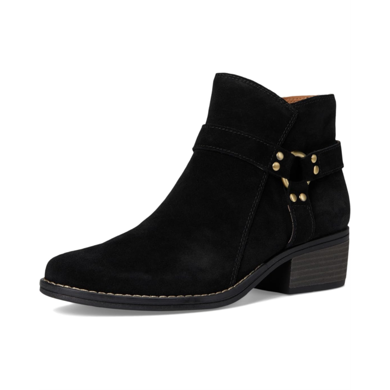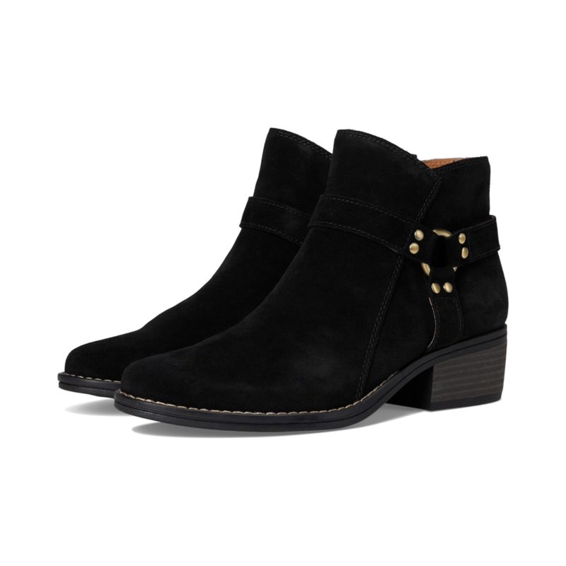 Strut in the modern western style wearing the White Mountain Altossa. This bootie is ankle length with a block heel, and functional inside zipper for easy closure. The harness detailing provides a modern look on a western style bootie. It is crafted from leather upper, fabric lining, and foam insole.