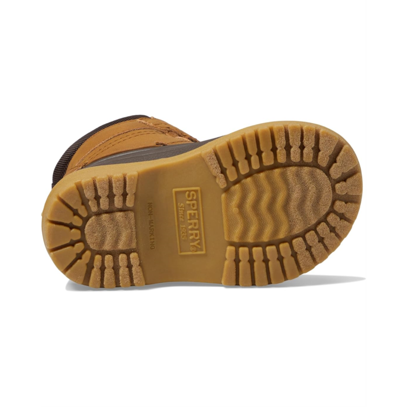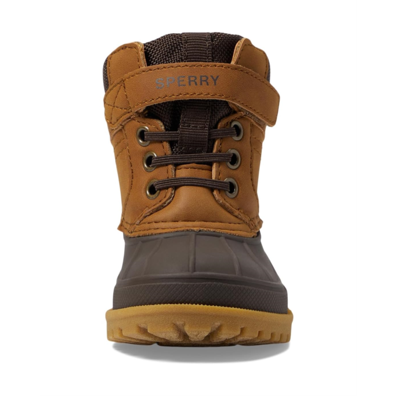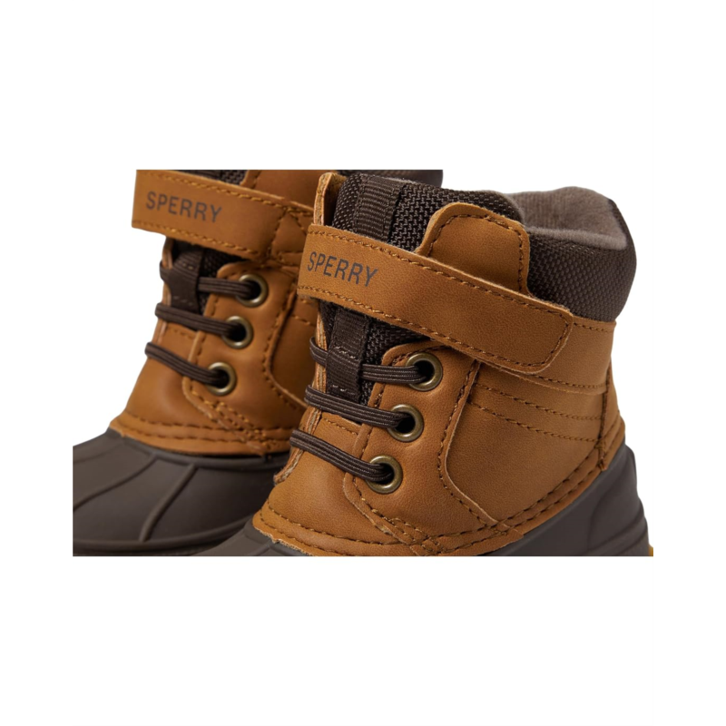 Step in style and confidence by wearing the Sperry Kids Storm Hopper A/C boots. The pull-on style boots have a round toe, lace-up with hook-and-loop closure, and slight heels. The boots have textile and synthetic upper and textile lining and insole for added comfort.